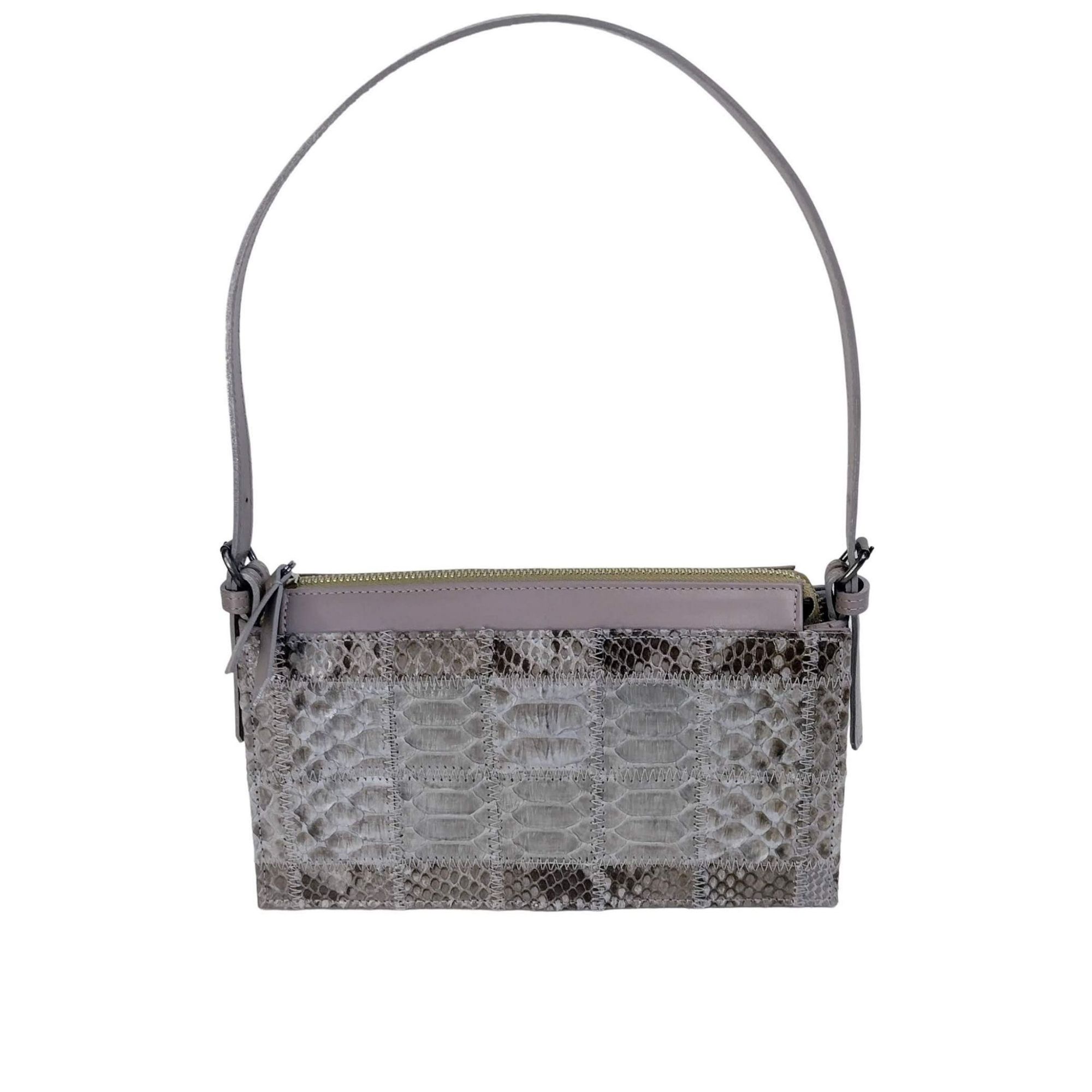 Bolsa Frank Nemeth modelo Sophia, na cor Nude, confeccionada com pele de python e couro legítimo, traz até você praticidade e elegância no dia á dia. Frank Nemeth é uma marca que tem acabamento impecável e utiliza matérias primas de qualidade. A bolsa tem as seguintes dimensões: largura 23 cm, altura 14 cm, profundidade 5 cm. Internamente o acabamento e cetim e couro também é primoroso tanto quanto externamente, contendo um prático bolso.